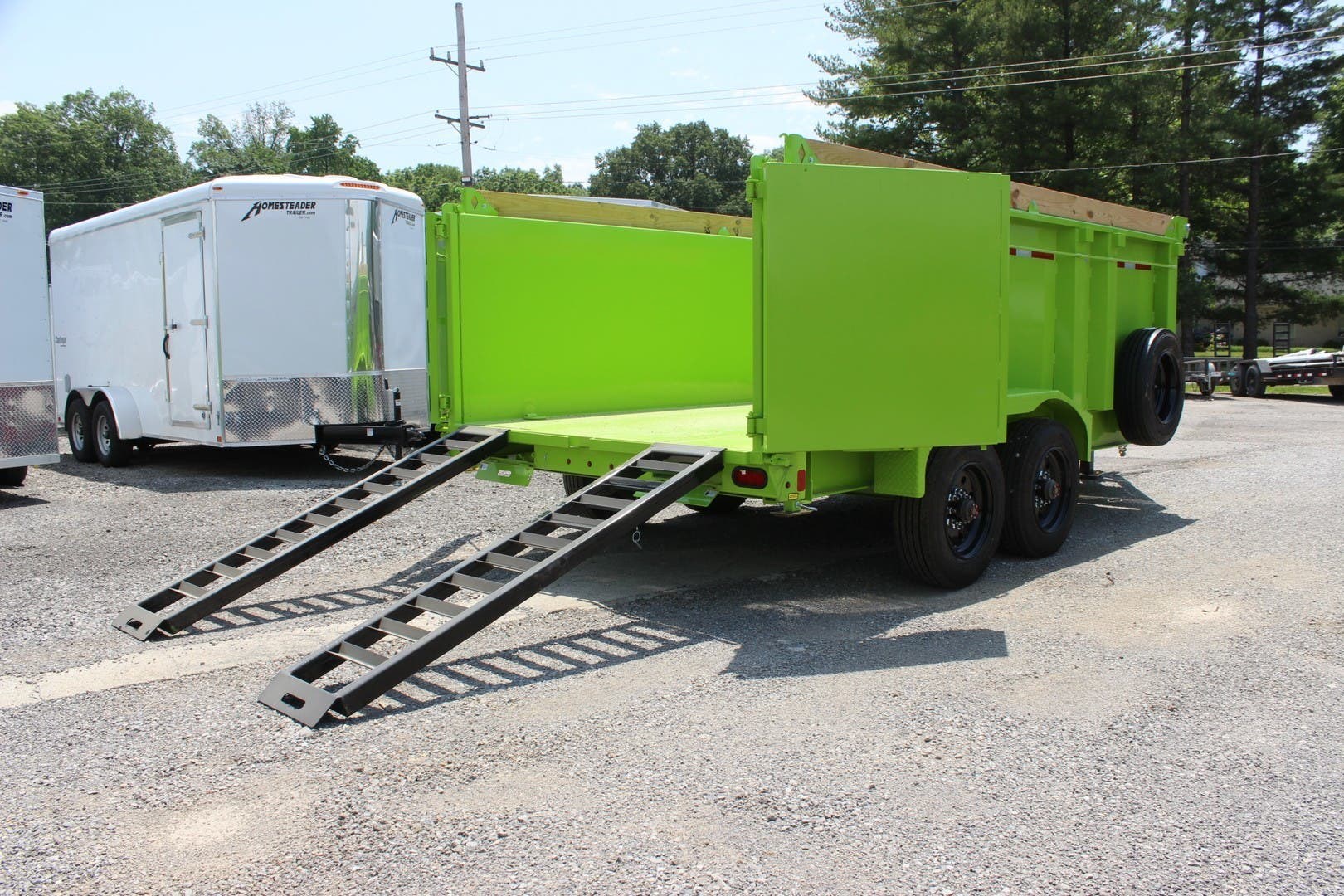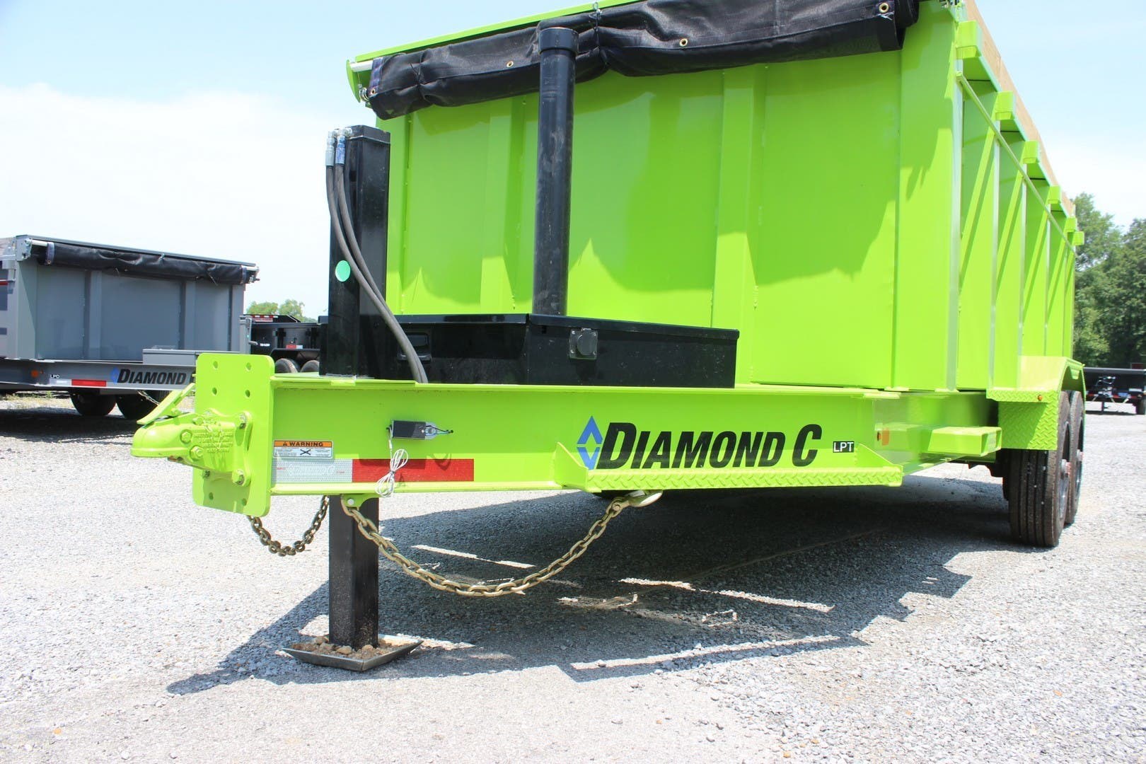 2022 DIAMOND C 14′ X 82″ HEAVY DUTY LOW PROFILE DUMP TRAILER, TELESCOPIC CYLINDER HOIST, 44″ HIGH SIDES, 2-5/16″ 20K FLAT MOUNT COUPLER, HYDRAULIC JACK, ENGINEERED I-BEAM FRAME, 7 GA (3/16″) BODY, FLOOR AND SIDES, 16″ ON CENTER CROSSMEMBERS, 3/16″ DIAMOND PLATE FENDERS, 2-10K OIL BATH TORSION AXLES, ELECTRIC DRUM BRAKES, ST215/75R17.5″ 16 PLY TIRES, SPARE TIRE MOUNT, MATCHING SPARE TIRE, 3 WAY SPREADER GATE, 44″ HIGH SIDES, HD 78″ REAR SLIDE-IN RAMPS, REAR STABILIZER DROP LEG JACKS, FORK HOLDER, 1-36″ SIDE STEP, FRONT BULKHEAD FOR TARP MOUNTING AND PROTECTION, 20′ TARP INSTALLED, BOARD BRACKETS WITH BOARDS AND RAISED FRONT, (4) HD 5/8″ D-RINGS, LED LIGHTS, 7 WATT SOLARPULSE PANEL, LIME (NEON) GREEN, DM DIFFERENCE MAKER COATING SYSTEM, 3 YEAR STRUCTURE WARRANTY.
